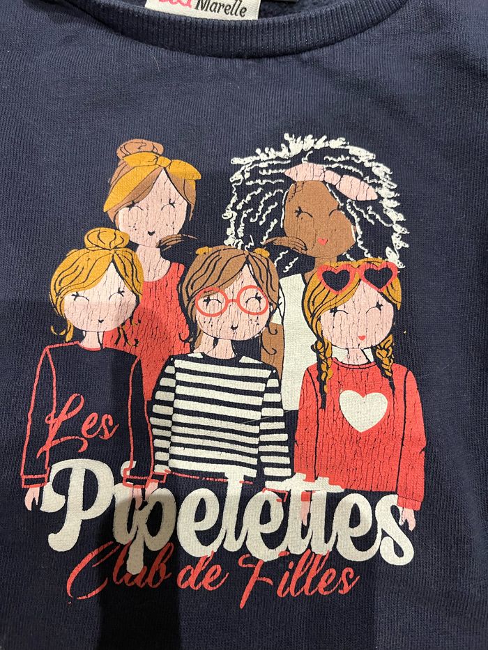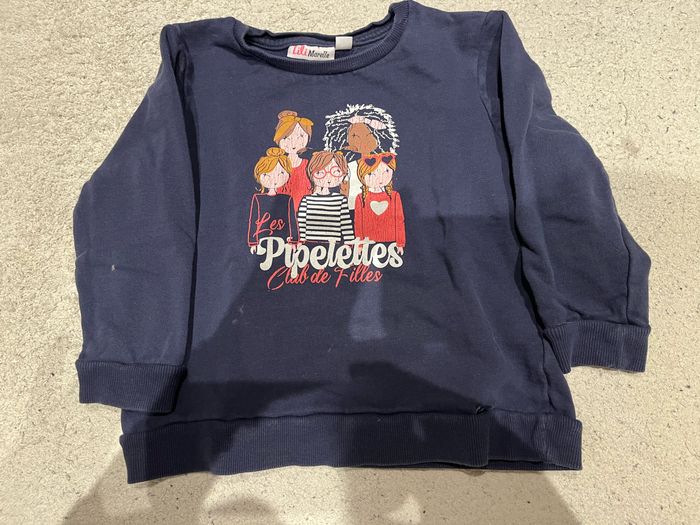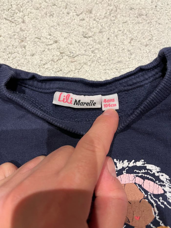 Pull bleu marine Taille 4 ans Marque Lili Marelle Il y a 2 tâches et le dessin est craqué (voir photo)