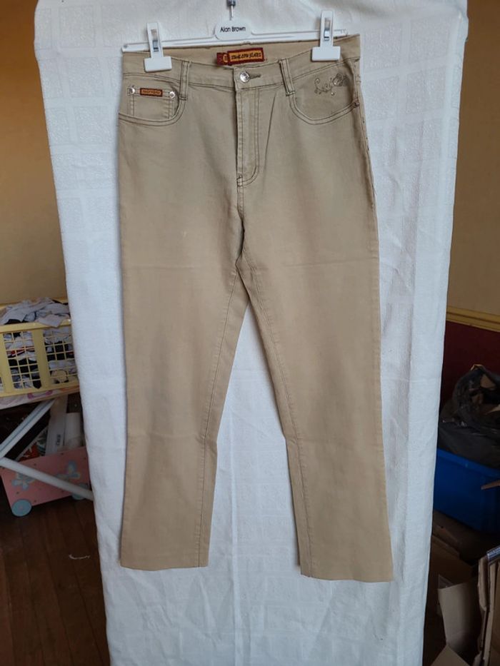 ⬇️mes autres annonces pour femme taille 38👉 #cg89femme38 😁 réductions activées des 2 articles ! un jean jambes large avec de poches avec des broderies et strass. bon état (petites taches - voir photo). Il mesure 38 cm de taille, 98 cm de longueur et 18 cm bas de jambe. bon état, taille 38 #jean #jeandroit #taille38 #strass #broderie