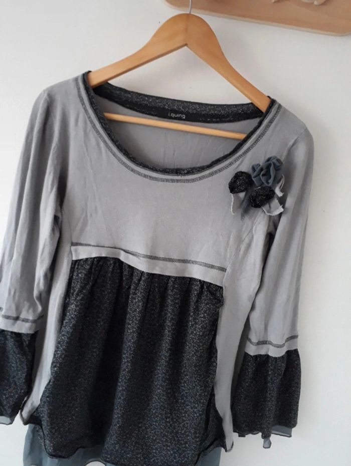 Joli Blouse gris Taille L🌿💝 - photo numéro 6