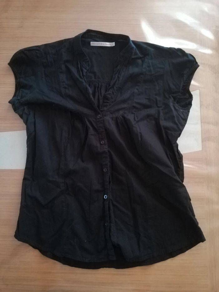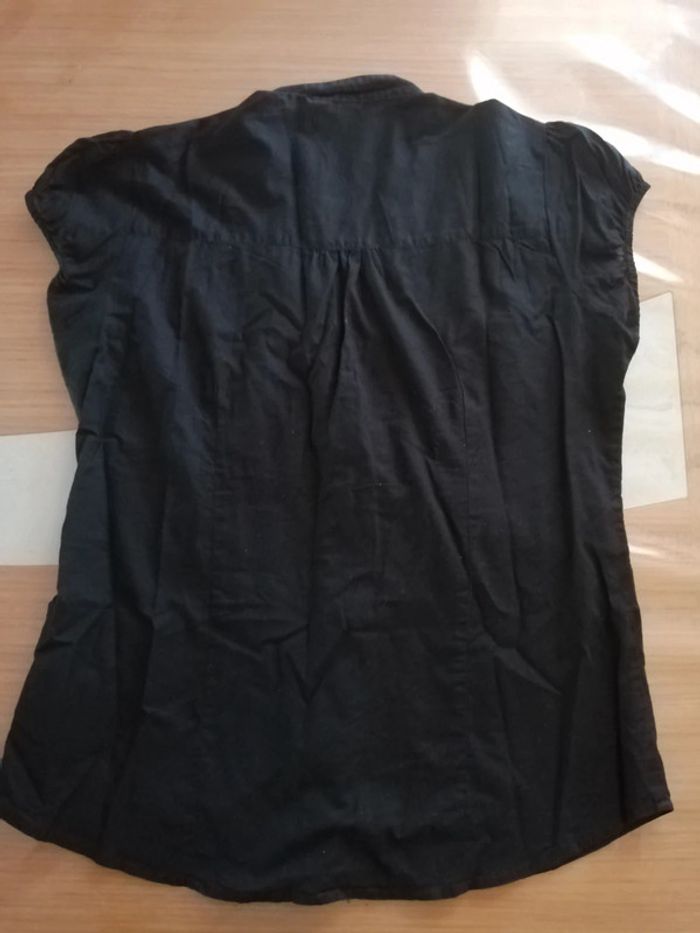 Chemise noire Jennyfer à manches courtes. Tâches légèrement blanches sous les aisselles (voir photos). Taille L. 100% coton #28flonat01femme