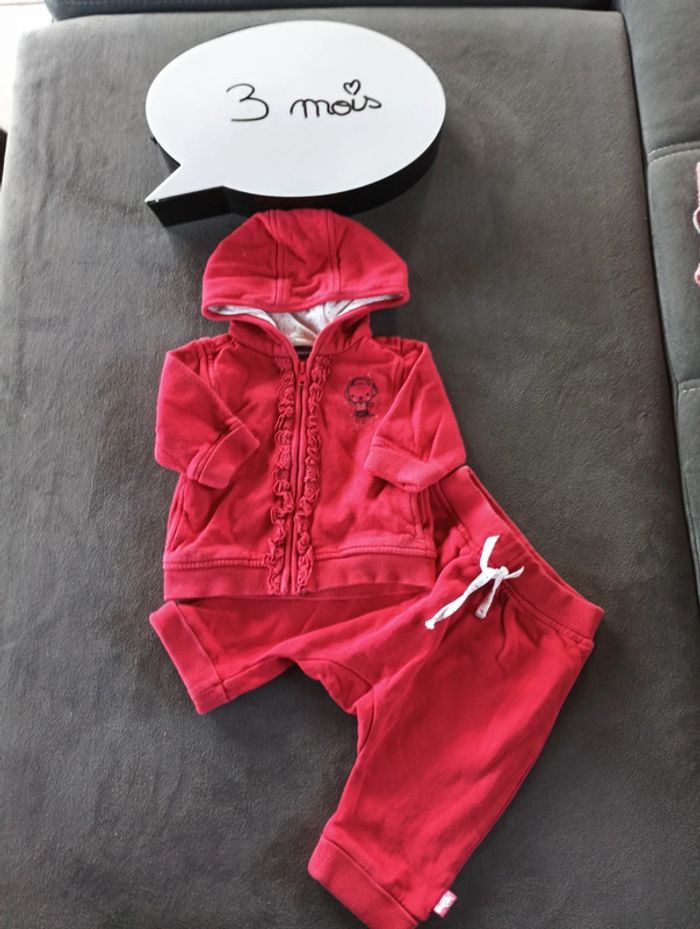 Ensemble (gilet zippé avec capuche+sarouel) Fille 3 mois Sergent major