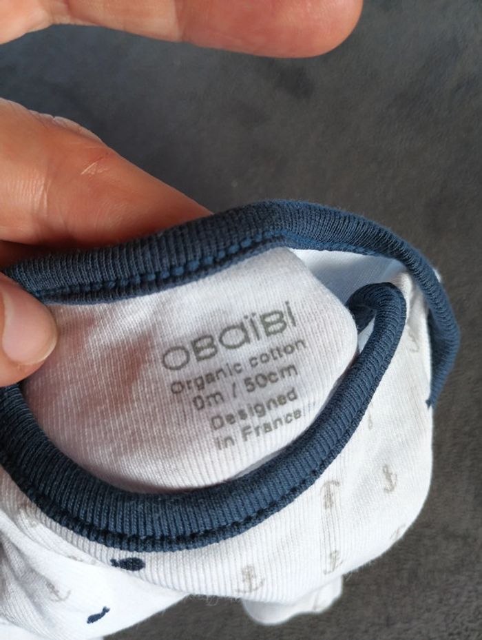 Body manches longues Mixte 0 mois Naissance Obaïbi ancre mer poisson coton bio - photo numéro 2