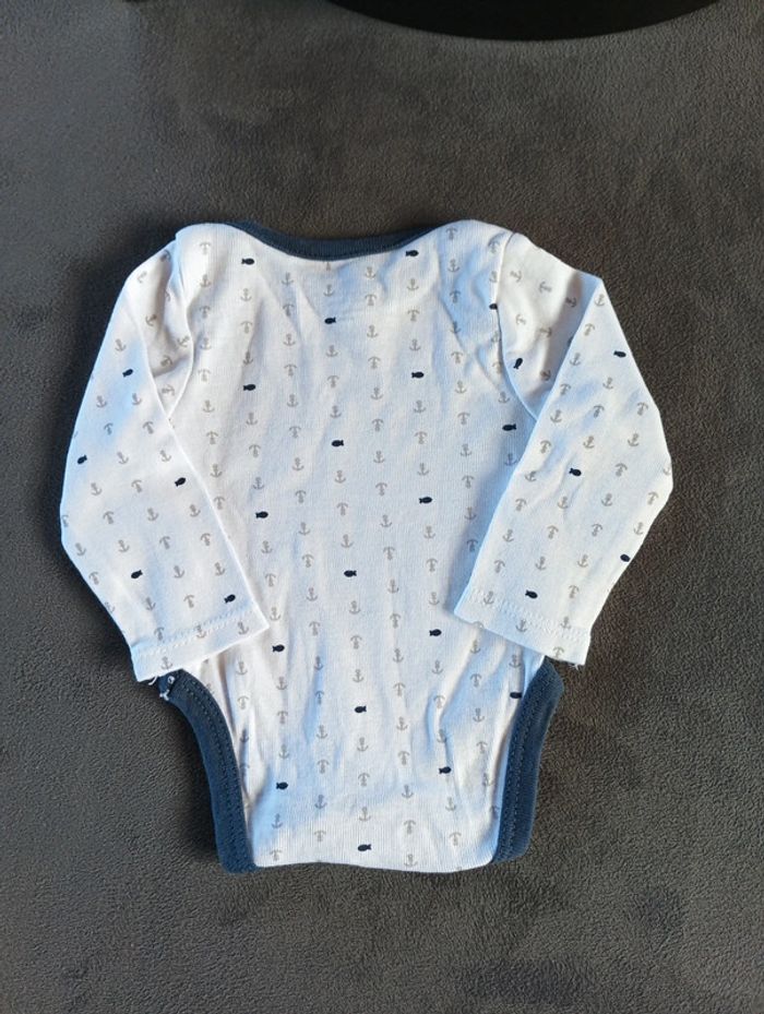 Body manches longues Mixte 0 mois Naissance Obaïbi ancre mer poisson coton bio - photo numéro 3