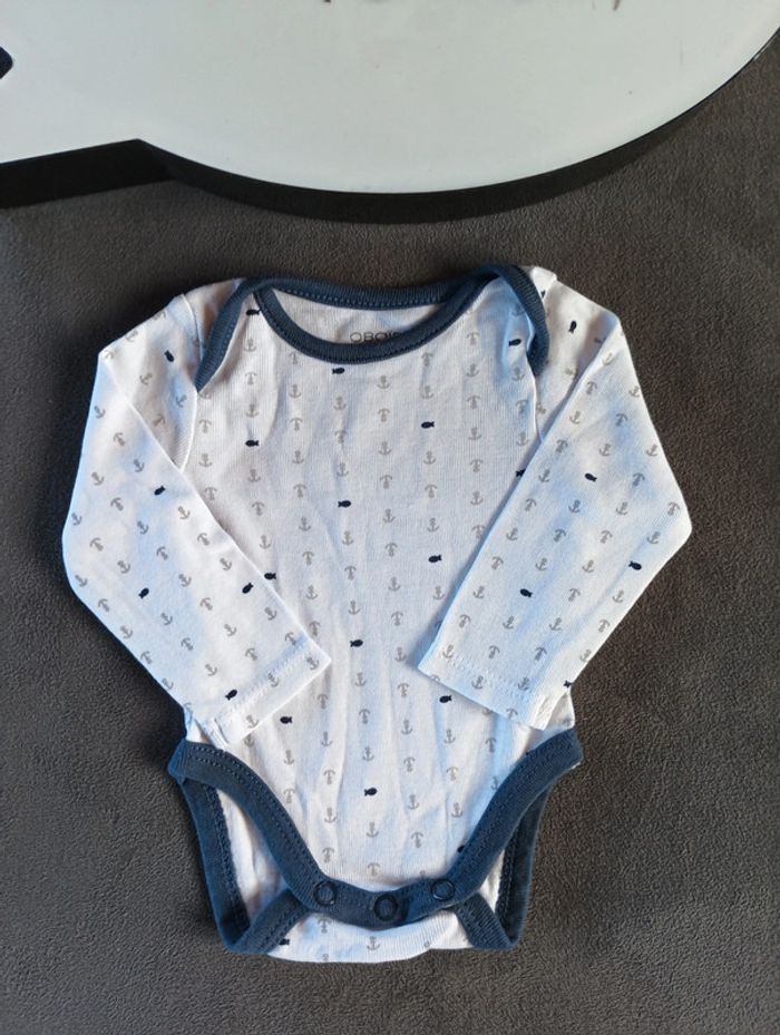 Body manches longues Mixte 0 mois Naissance Obaïbi ancre mer poisson coton bio - photo numéro 1
