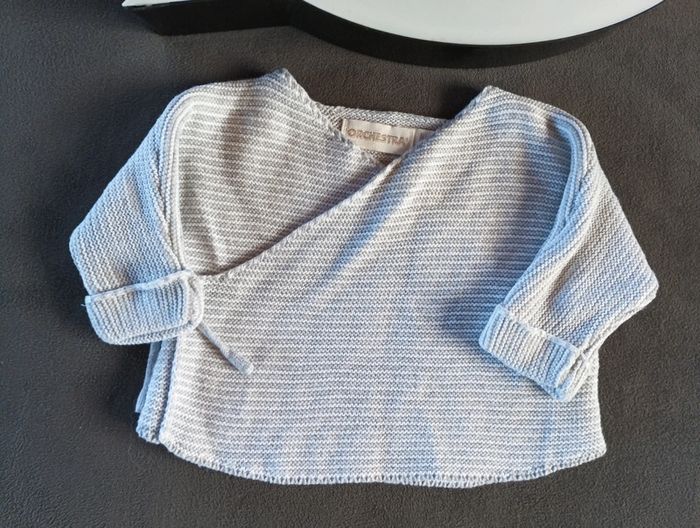 Brassière gilet maille rayé Mixte 0 mois Naissance Orchestra 100% coton - photo numéro 1