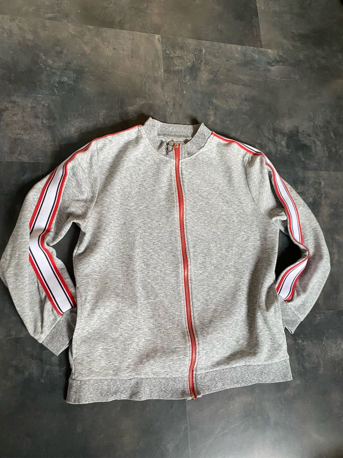 Gilet en parfait état gris bande blanche et rouge L Jules