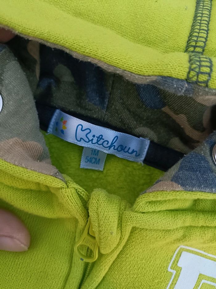 Ensemble jogging veste vert jaune fluo Kitchoun Taille 1 mois