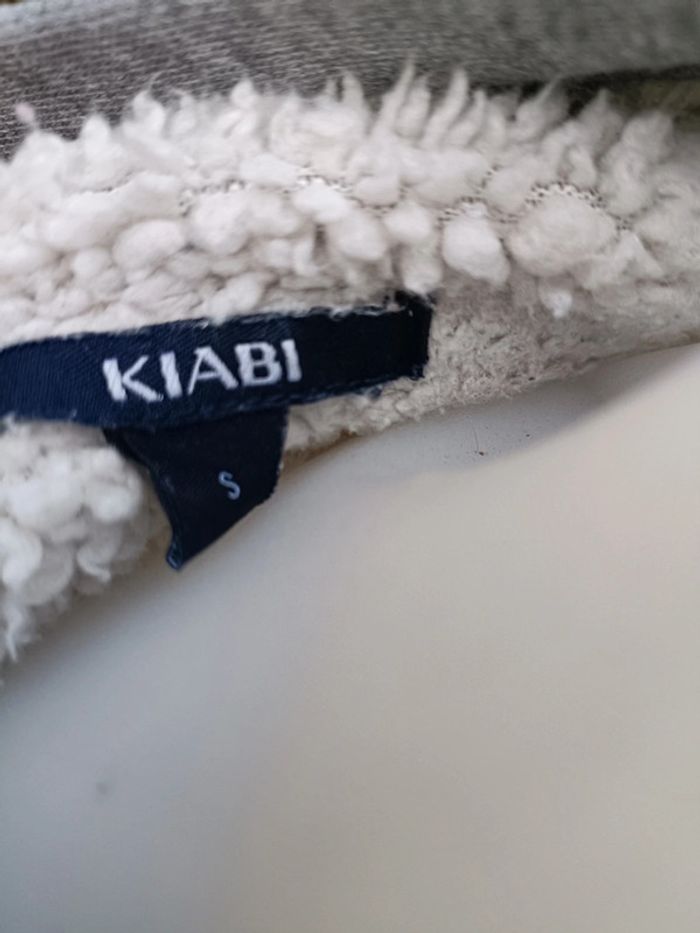 Veste grise moumouté à l'intérieur Présente une tâche sur la manche mais je n'ai pas essayé de détachant dessus Kiabi Taille S