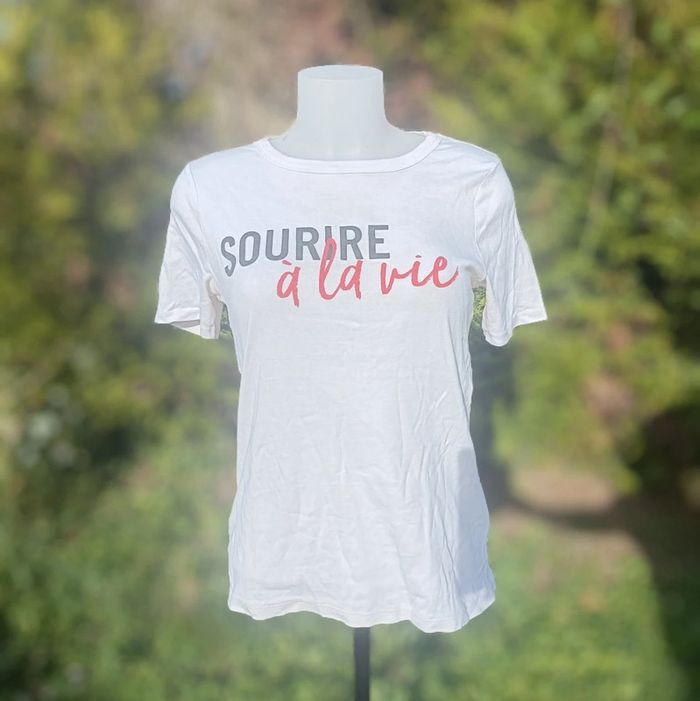 Tee shirt manches courtes sourire à la vie Camaïeu taille L