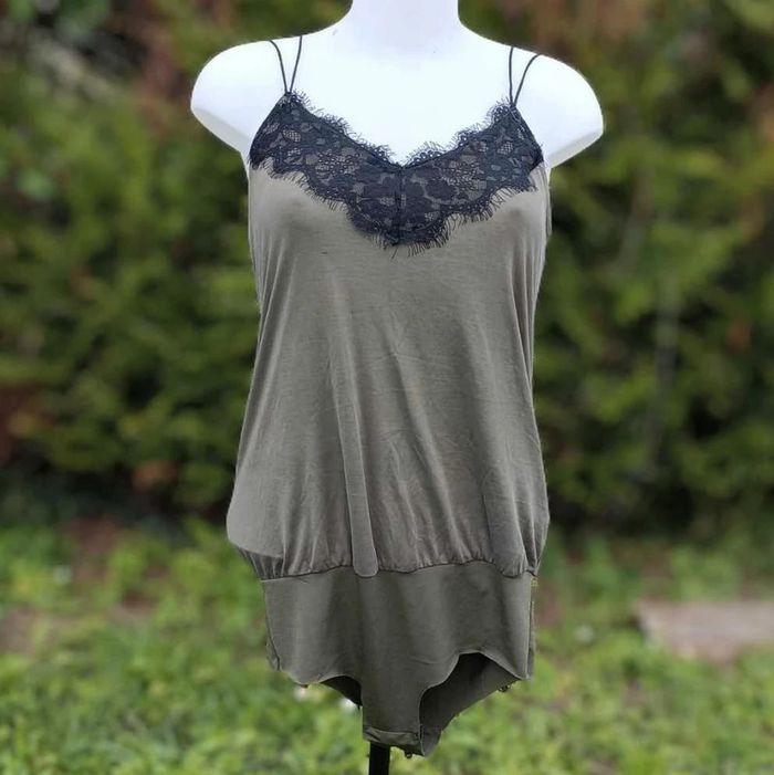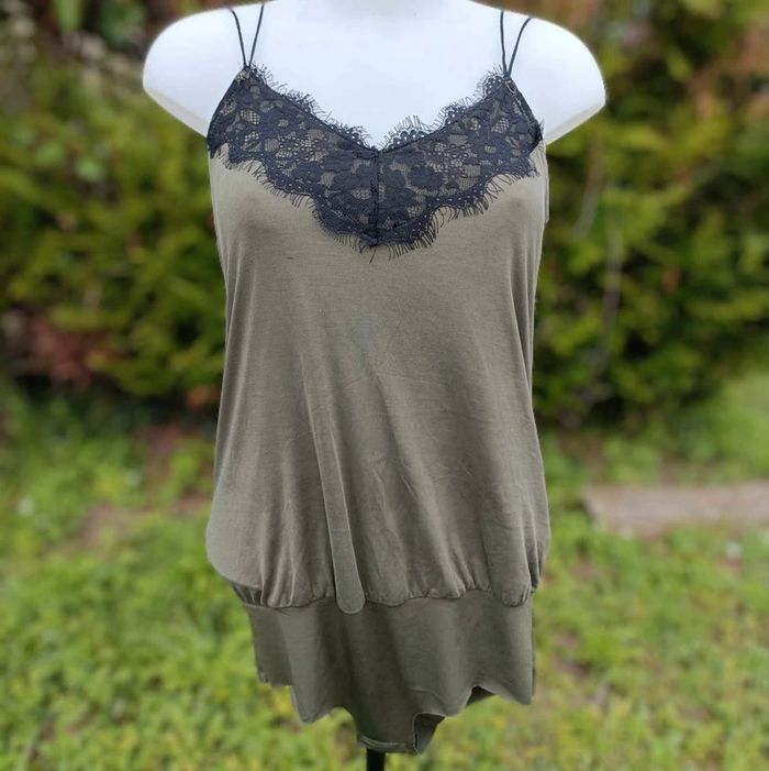 Body débardeur kaki avec détail dentelle sur le décolleté Kiabi Taille S