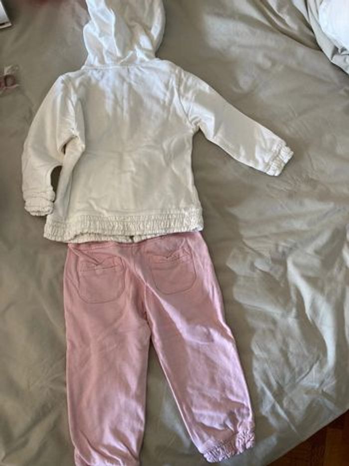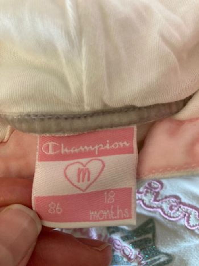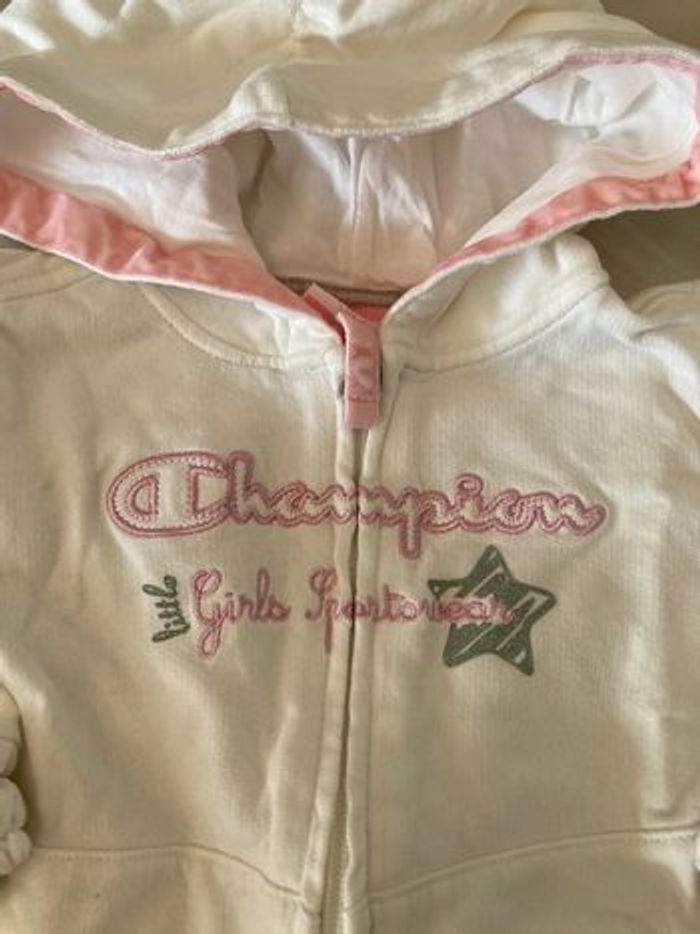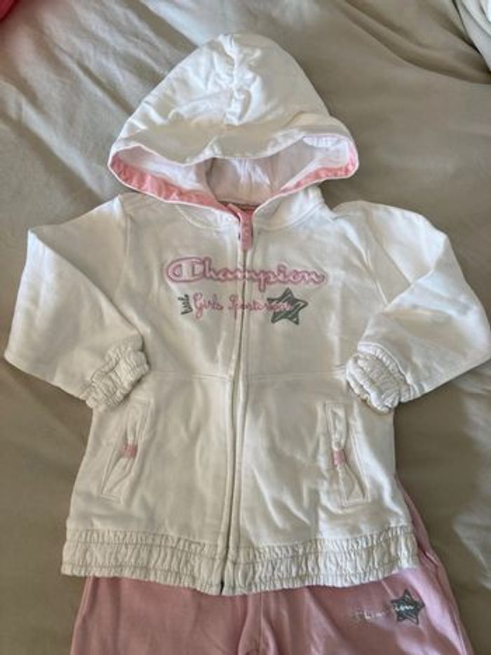 Champion Jogging pantalon + gilet zippé à capuche Blanc et rose clair Taille 18 mois Une petite tache quasi invisible sur la veste sinon très bon état