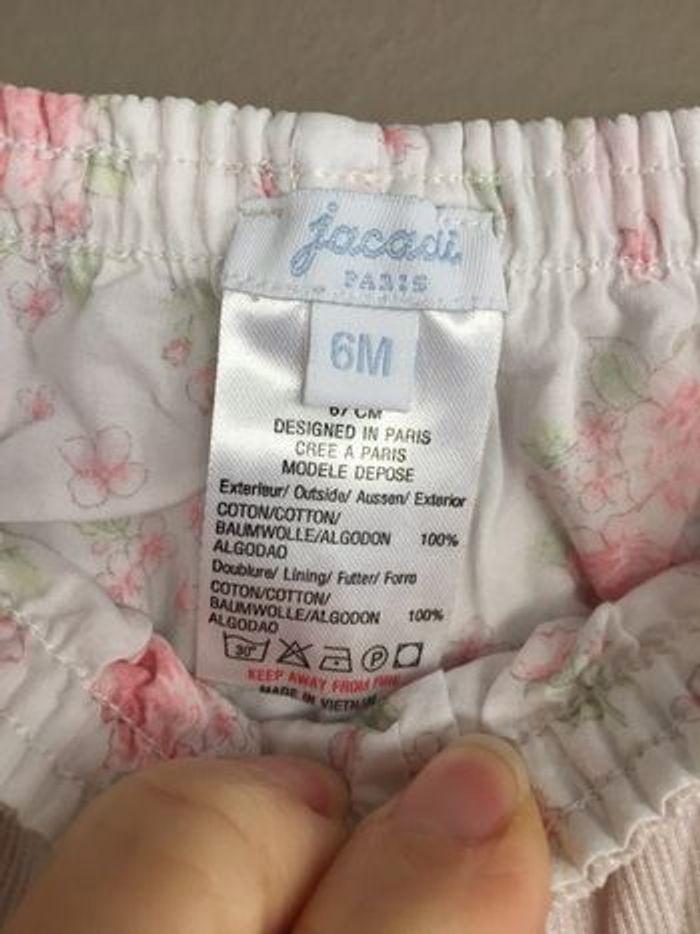 Jacadi Pantalon rose clair Taille 6 mois Doublure coton tissu fleuri Très bon état
