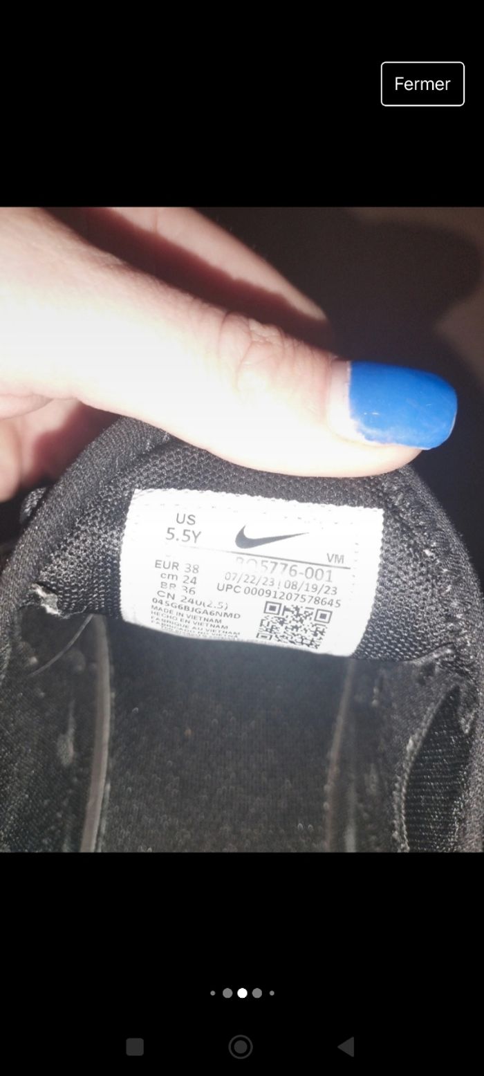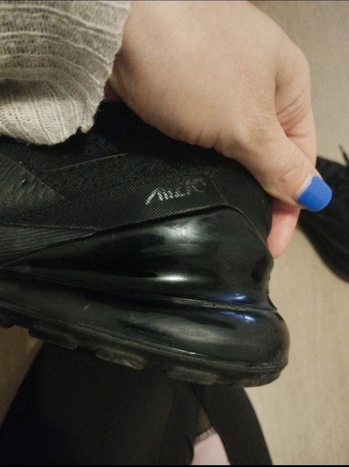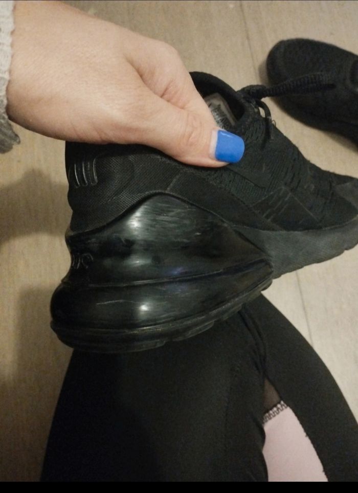Nike air 270 C taille 38 Acheté en mars 2024 Porté quelques fois Rayures sur les côtés des talons (voir photo 3 et 4)