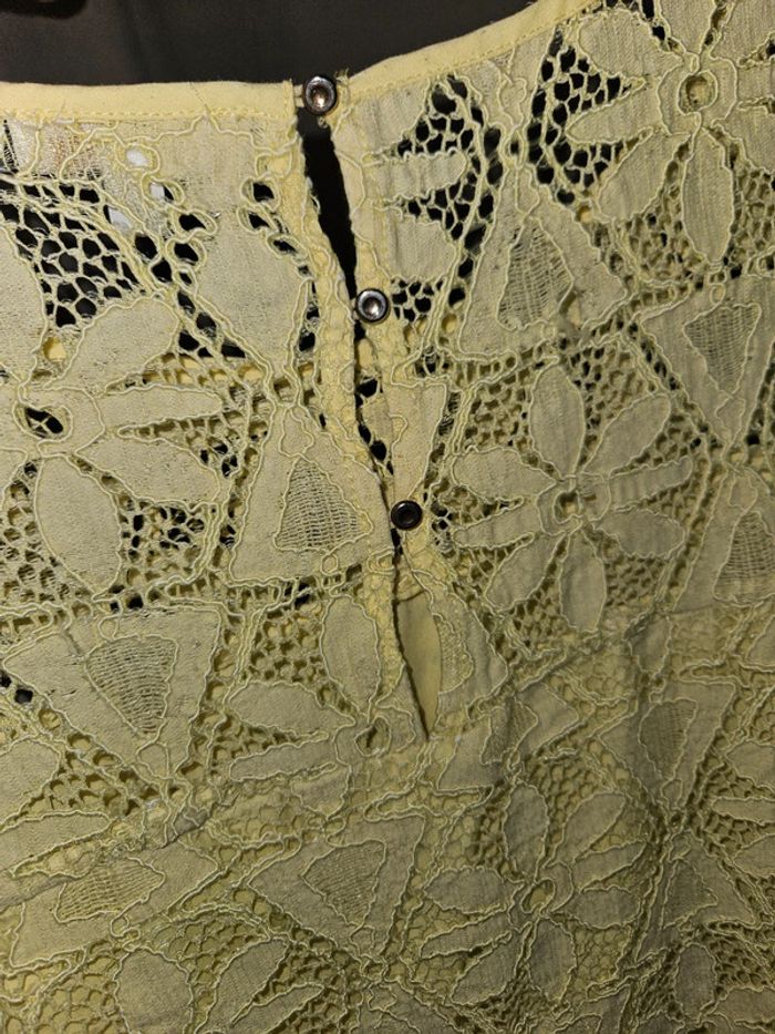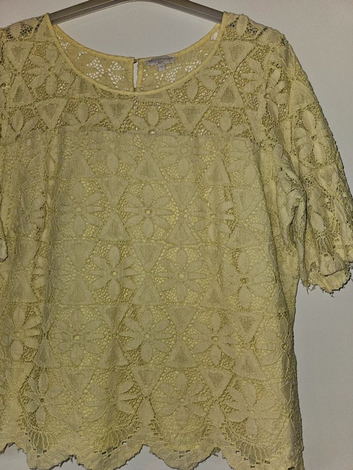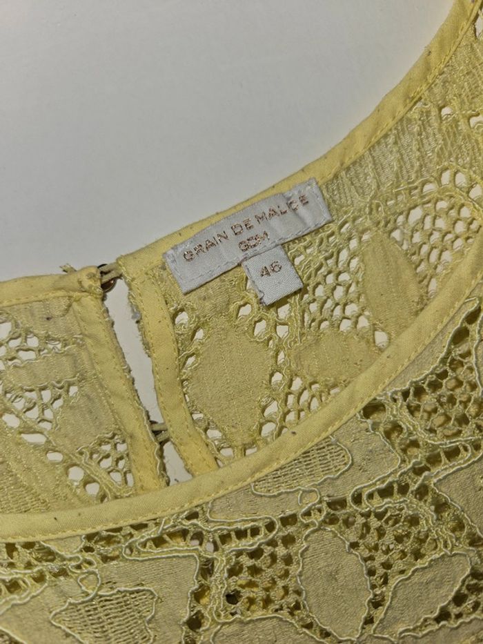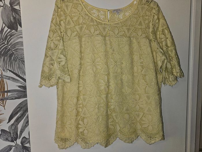 Très sympa Porté mais reste en bon état Taille 46 mais davantage 42 #hautgraindemalice #hautdentelle #jaune #hautdentellejaune