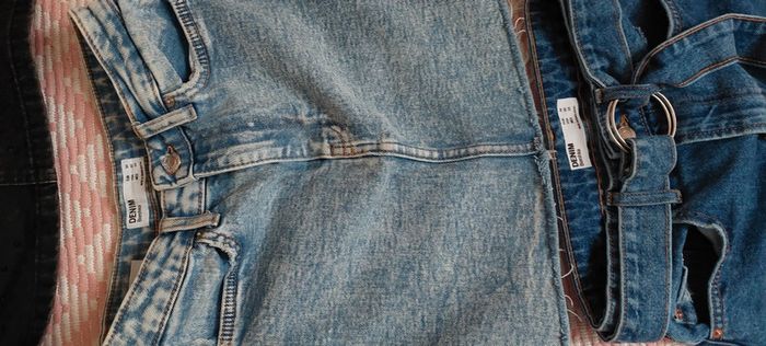 Lot de 3 jupes en jean en état neuf jamais portées : 2 jupes taille XS /34 / 12-13 ans de marque Denim Bershka 1 jupe noire avec strass brillants de marque Denim CO Est 1969 taille 12-13 ans 158 cm.