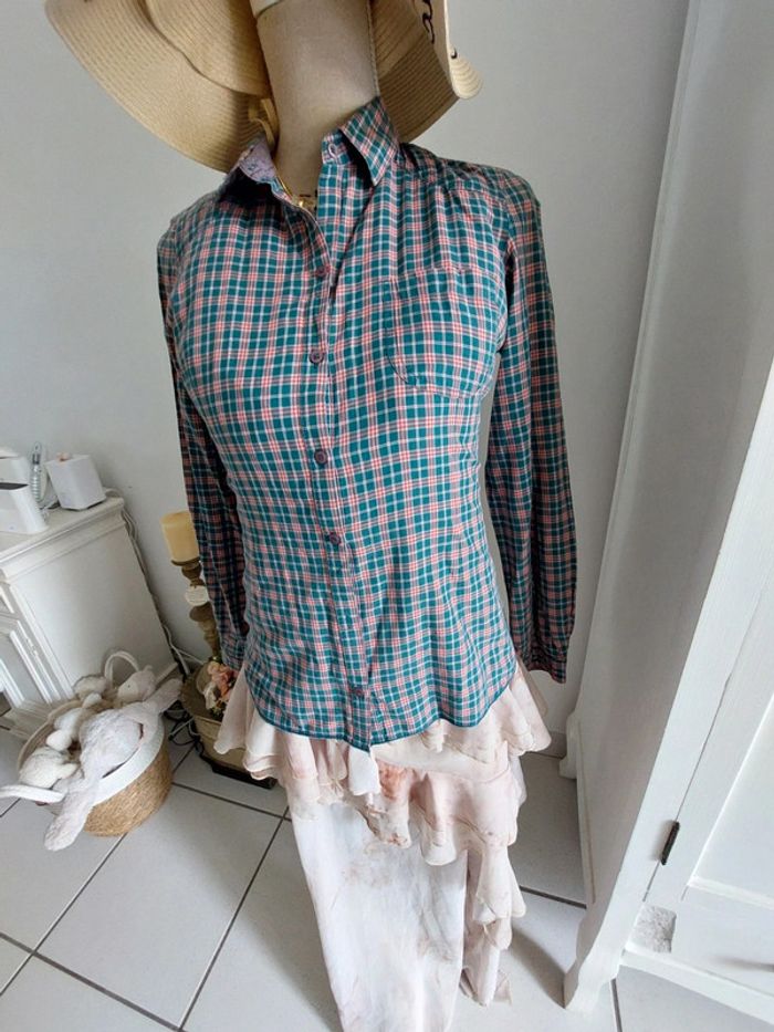 Superbe chemise à carreaux bleu turquoise et rouge de marque Zara Trafaluc taille M 38 excellent état