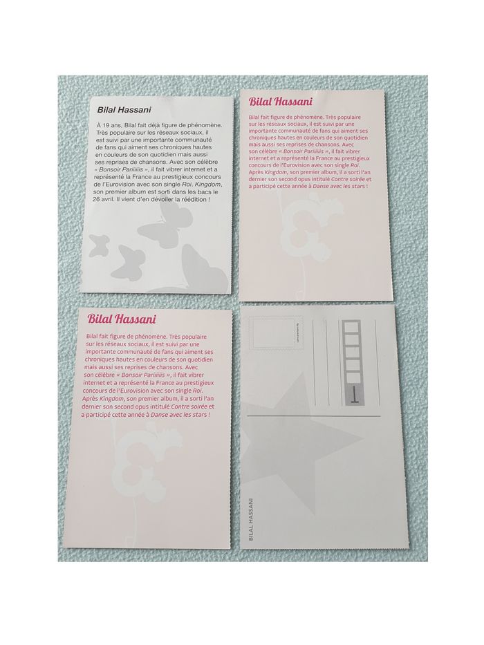 Bilal Hassani. Lot de 4 photos de Bilal Hassani issues de magazines. Dimensions : ≃ 10x15 cm - 1 de style carte postale - 3 de styles biographies En bon état. 1,00€ le lot. #vero38110chanteurs