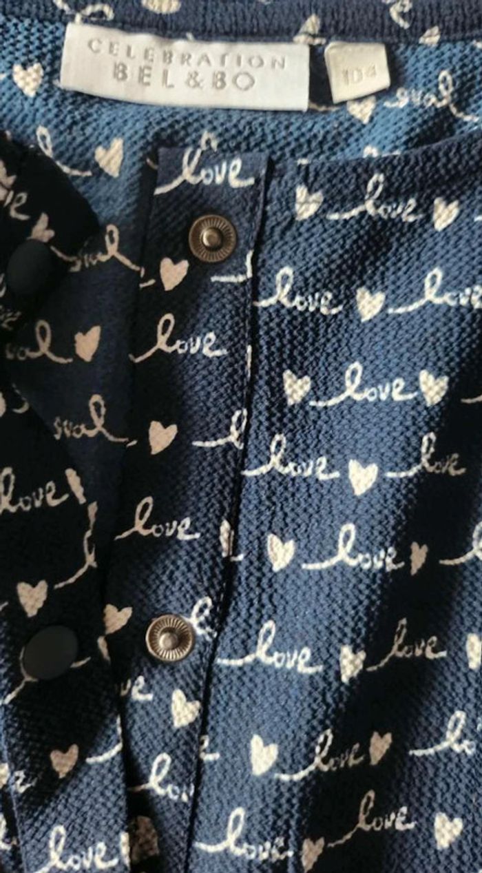 Superbe combinaison fille love bleu marine taille 104 .