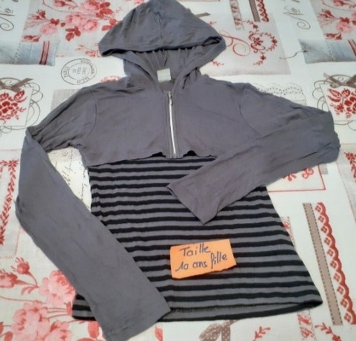 T shirt manches longues avec  capuche  10 ans fille
