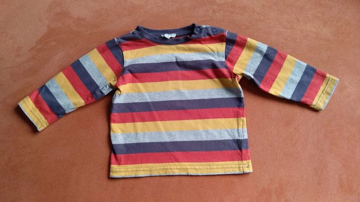 Sweat rayé garçon 18 mois. Deux boutons pressions sur l'épaule du sweat. Légère bouloche. #cyberangel0375garçon18mois #cyberangel0375g18mois_automnehiver #cyberangel0375garçon_automnehiver #cyberangel0375g18mois_sweat #garçon18mois #sweatgarçon18mois
