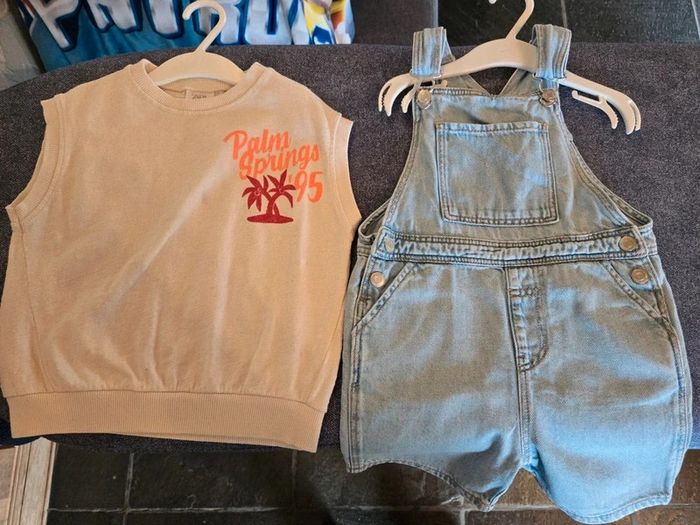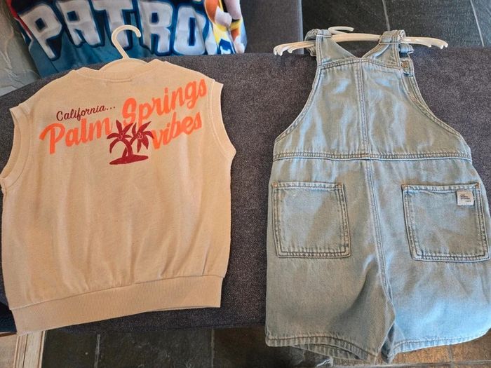 Pas d envoie homerr / vinted go Salopette avec mini accros sur la poche avant pull sans manche avec mini tâche sur l avant Ensemble encore magnifique Dernier prix