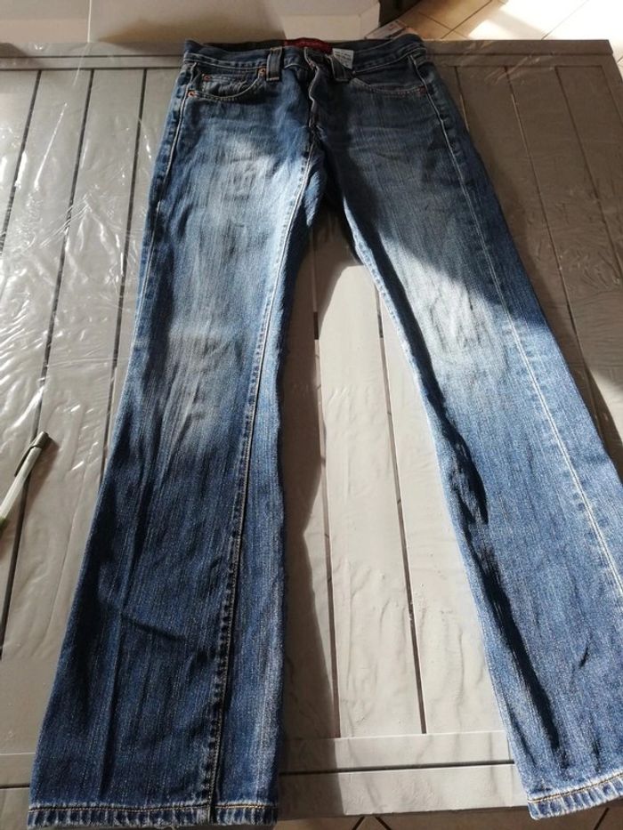 Un peu abîmé sur les bas arrière, et 1 poche fil décousu cf photo Taille M