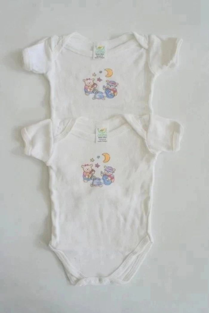 Lot de 2 bodys blanc manches courtes Grasshoper, made in Grande Bretagne 6 mois, 90g