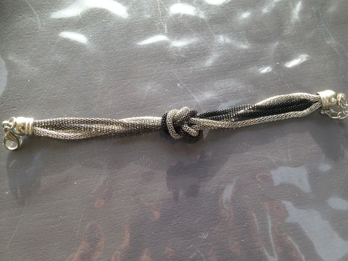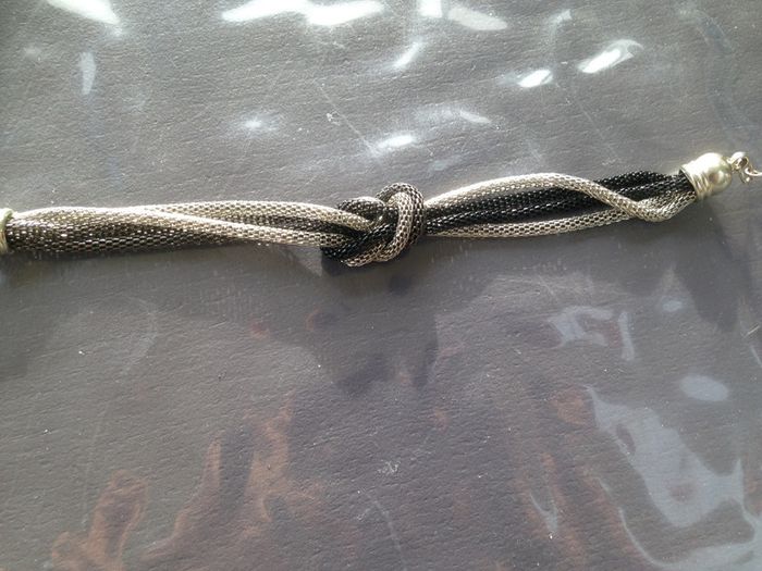 Bracelet gris argent, possibilité de faire le noeud plusieurs fois Tres peu porté