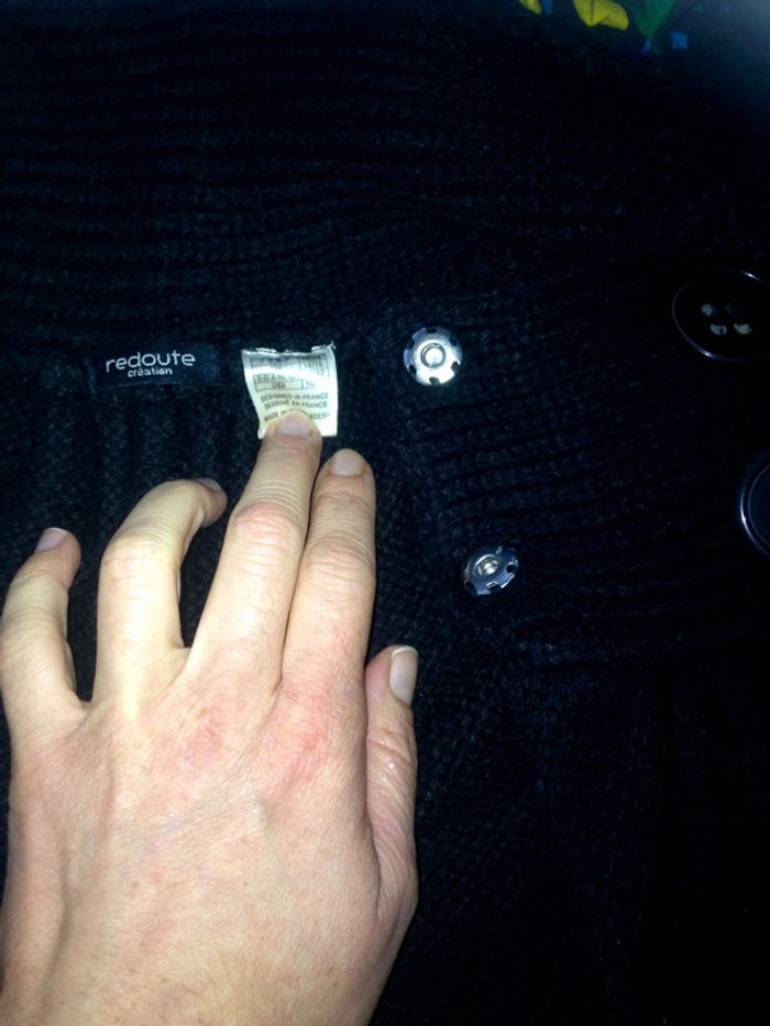 Gilet noir grosse maille manche courtes large La redoute t 42 Col pratique 2 pressions 2 boutons en deco Peluches ....