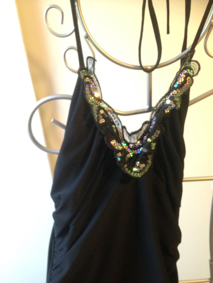 Robe noire col v pailleté - photo numéro 2