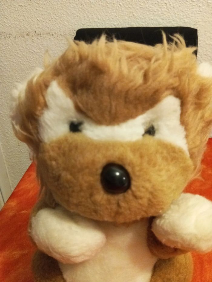 Peluche Ours , hérisson ou raton laveur, je sais pas 😅, marron beige et blanc, vintage, marque ELVE, 30 cm