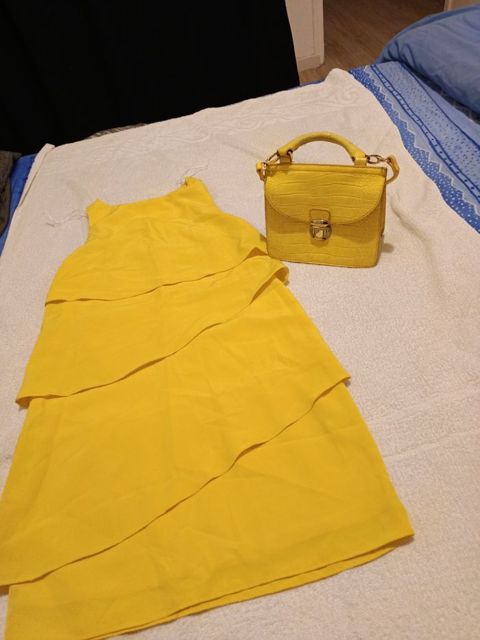 Petite robe jaune femme plus sac à main - photo numéro 1