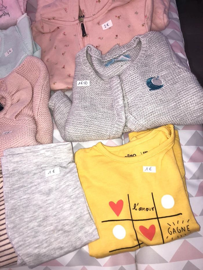 2 gilets 2 vestes à capuches dont 1 neuf avec étiquette 1 pyjama 1 pull 2 tee shirt manche longue 1 legging #romornum6mois