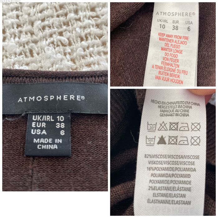 Long pull marron col en V « Atmosphère » taille 38 neuf jamais porté Largeur prise sous les aisselles 50 cm Longueur 73 cm #sandra13190femmestailleM #sandra13190chapeau_accessoire_bijoux_sac