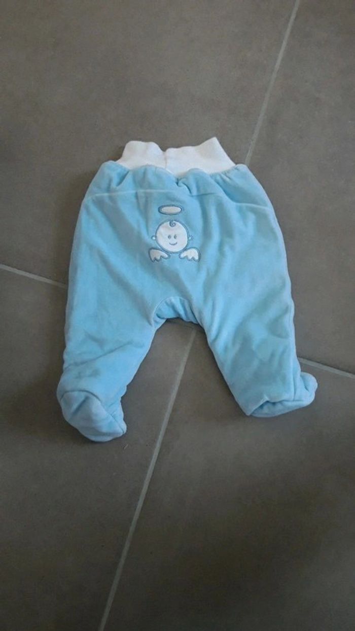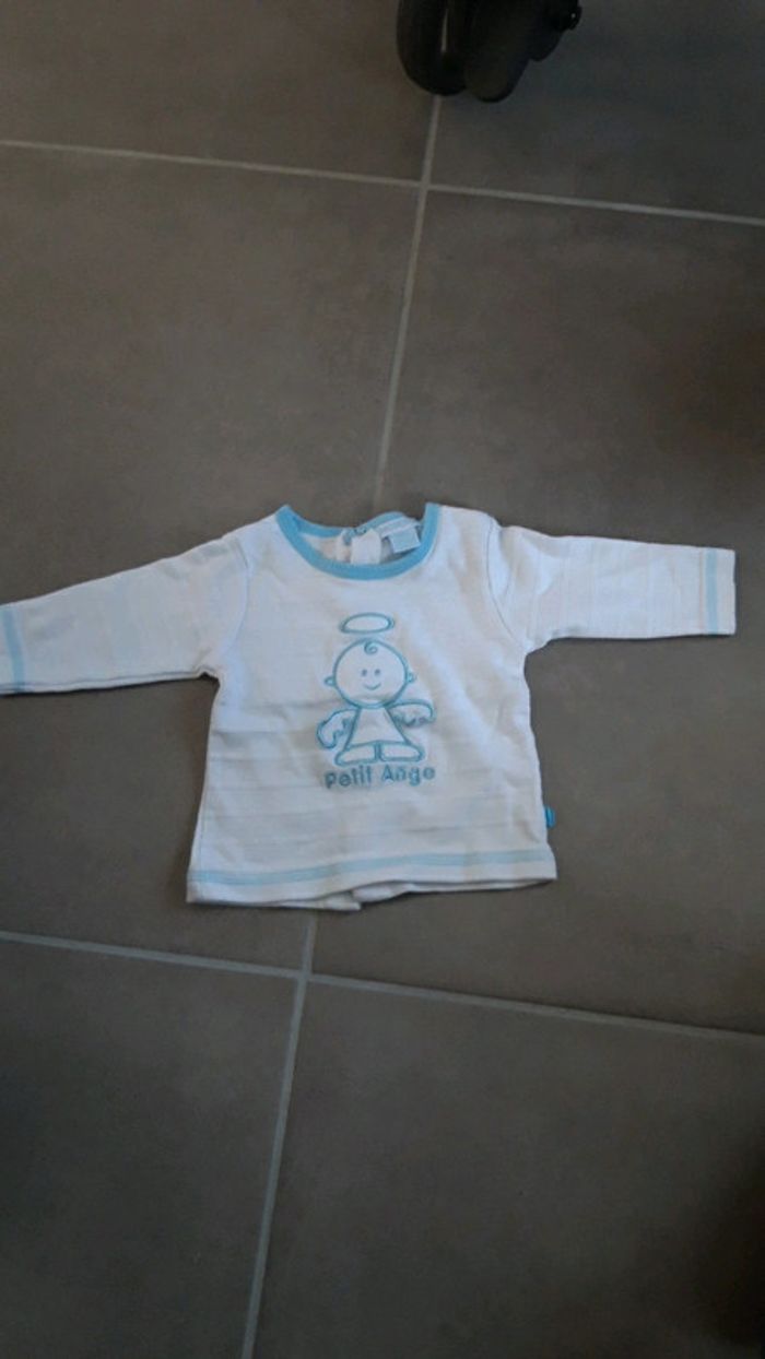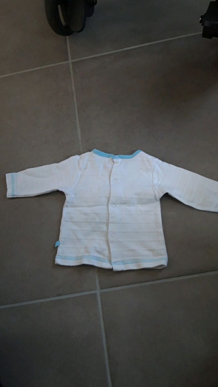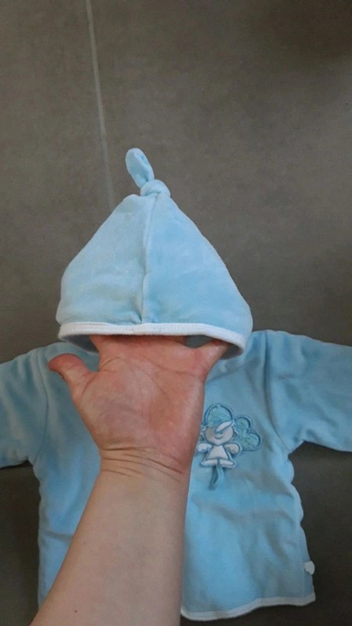 Bonjour, Je vends un ensemble bleu composé de sa veste/gilet chaud et de son pantalon et son tee-shirt (petit accro voir photo) taille 3 mois marque orchestra. Il est en très bon état et très chaud.
