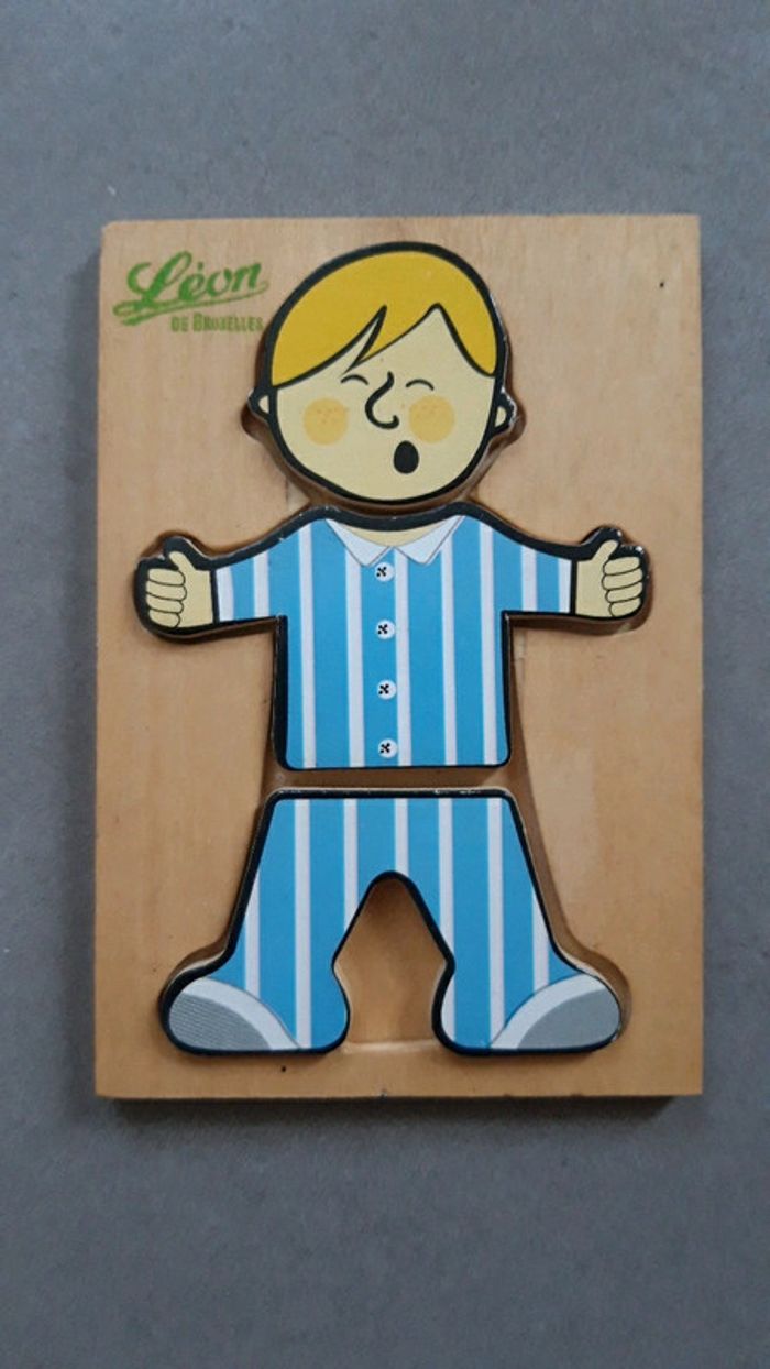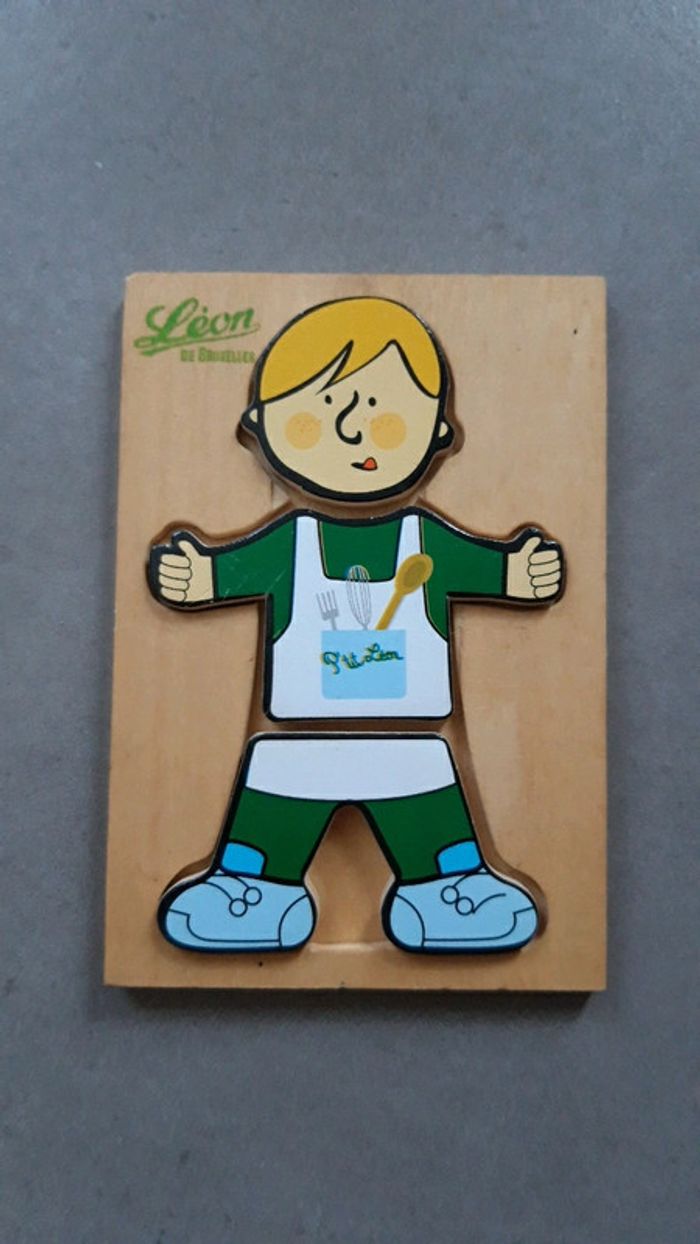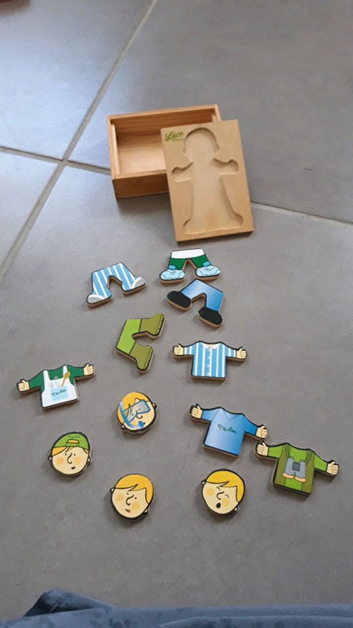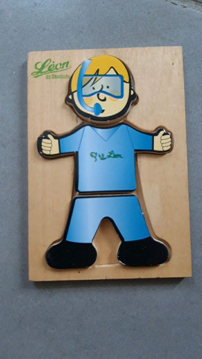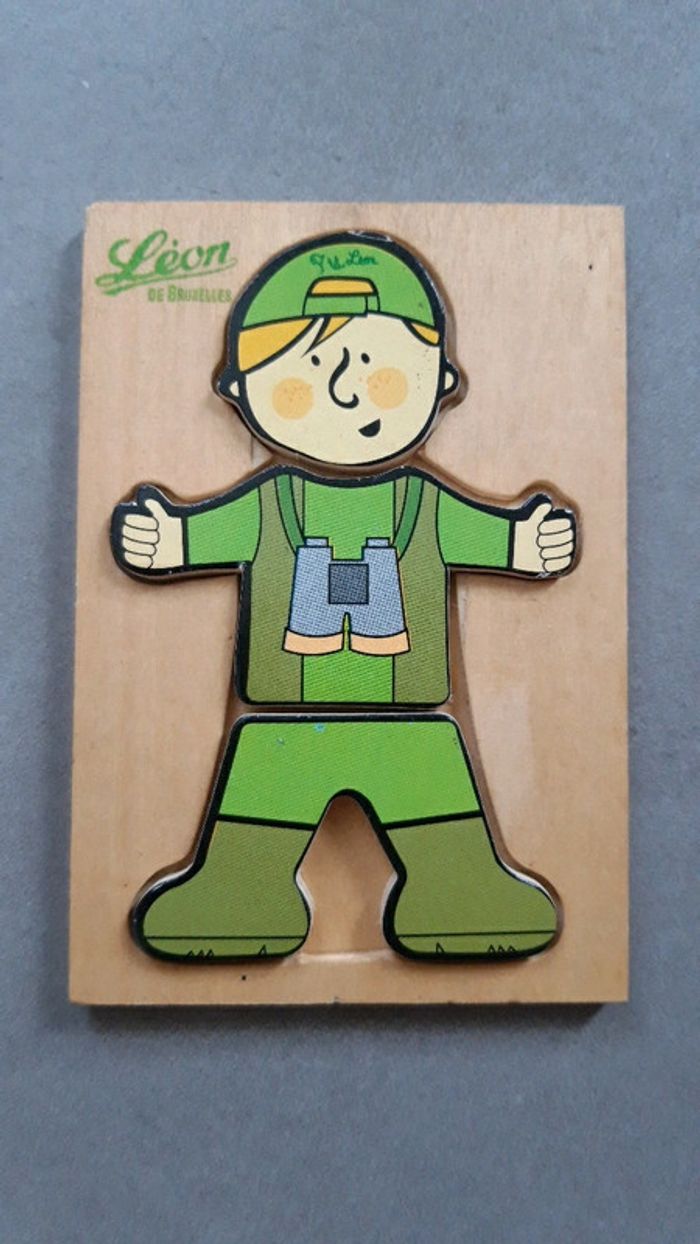 Bonjour, Je vends un jeu d'assemblage des parties du corps. Il s'agit du petit Léon, jeu Léon de Bruxelles. En bon état, très peu utilisé. La tâche marron derrière la boite est le bois (voir derrière photo).