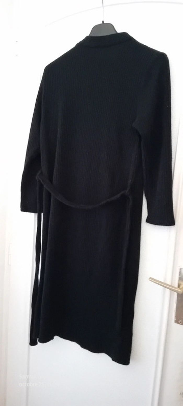 Robe pull maille côtelée col montant avec boutons et ceinture  noire femme 34 - photo numéro 2