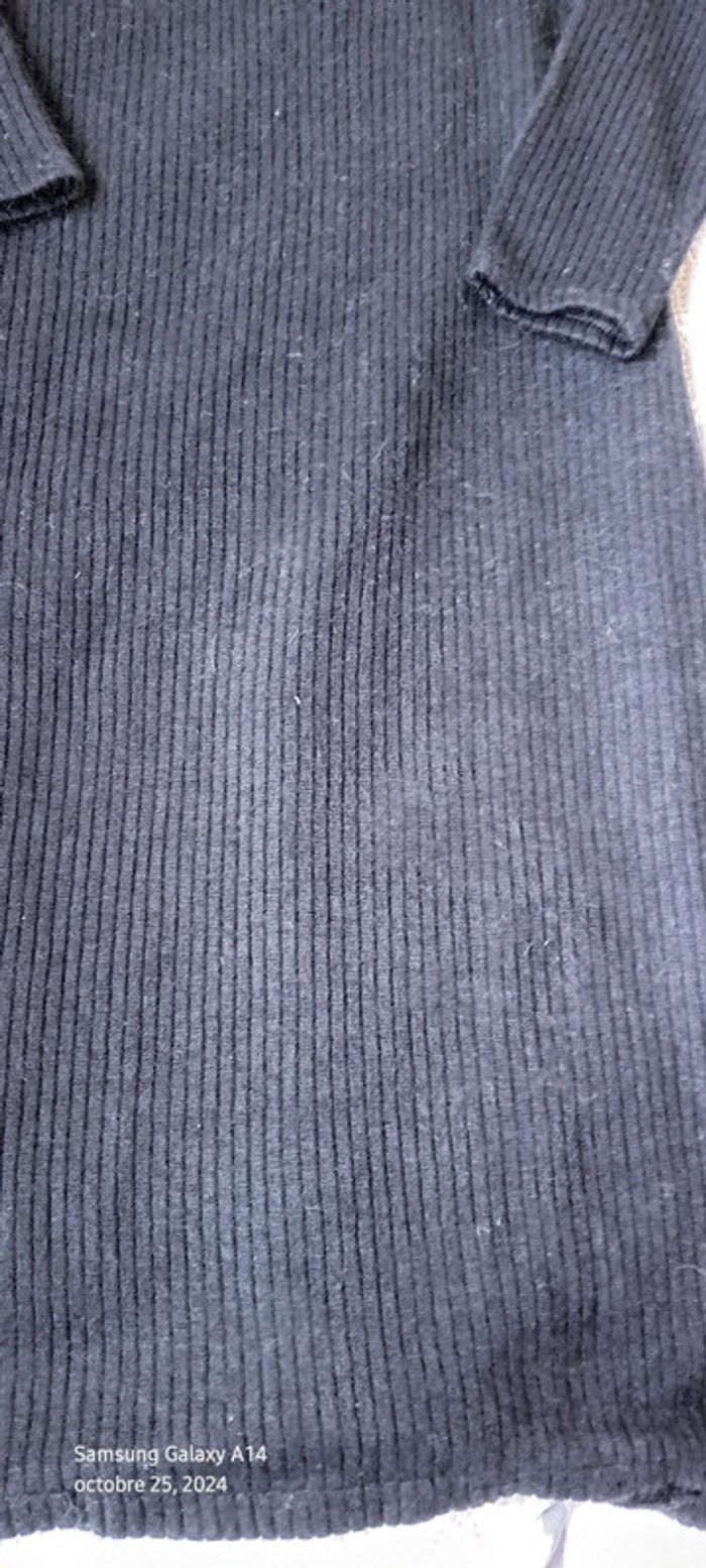 Robe pull maille côtelée col montant avec boutons et ceinture  noire femme 34 - photo numéro 3