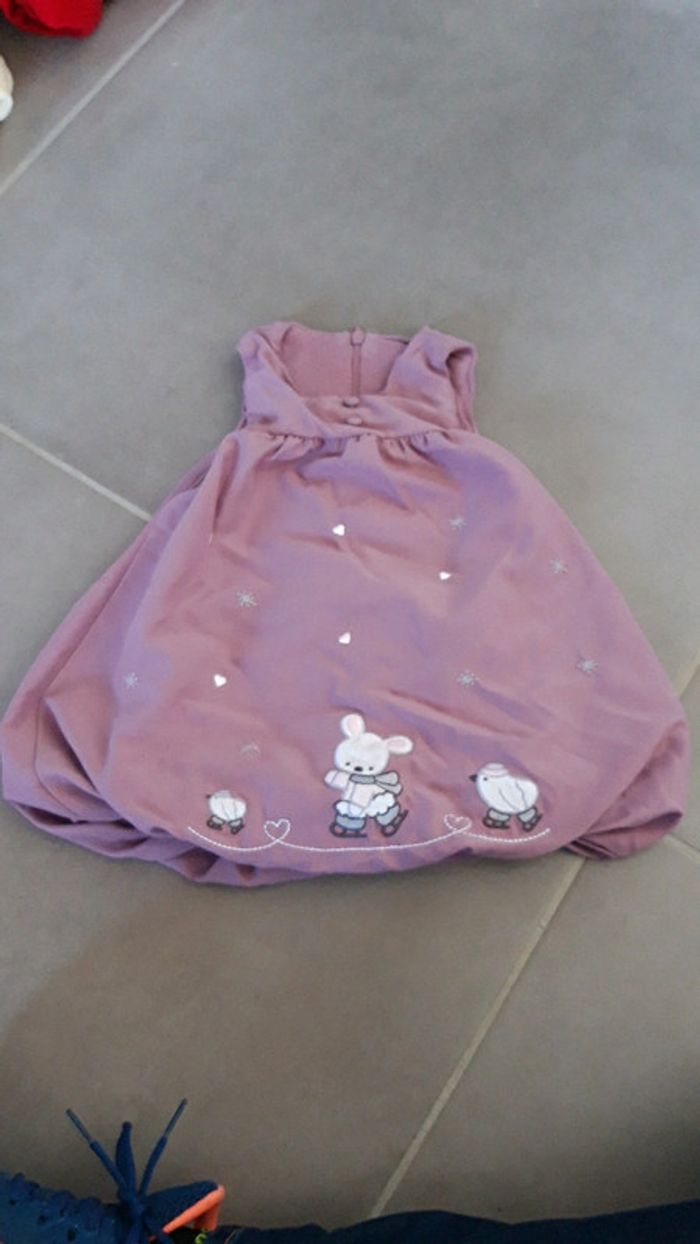Bonjour, Je vends une robe rose/violet taille 6 mois l'étiquette n'ai plus sur l'article. Elle est en très bon état.