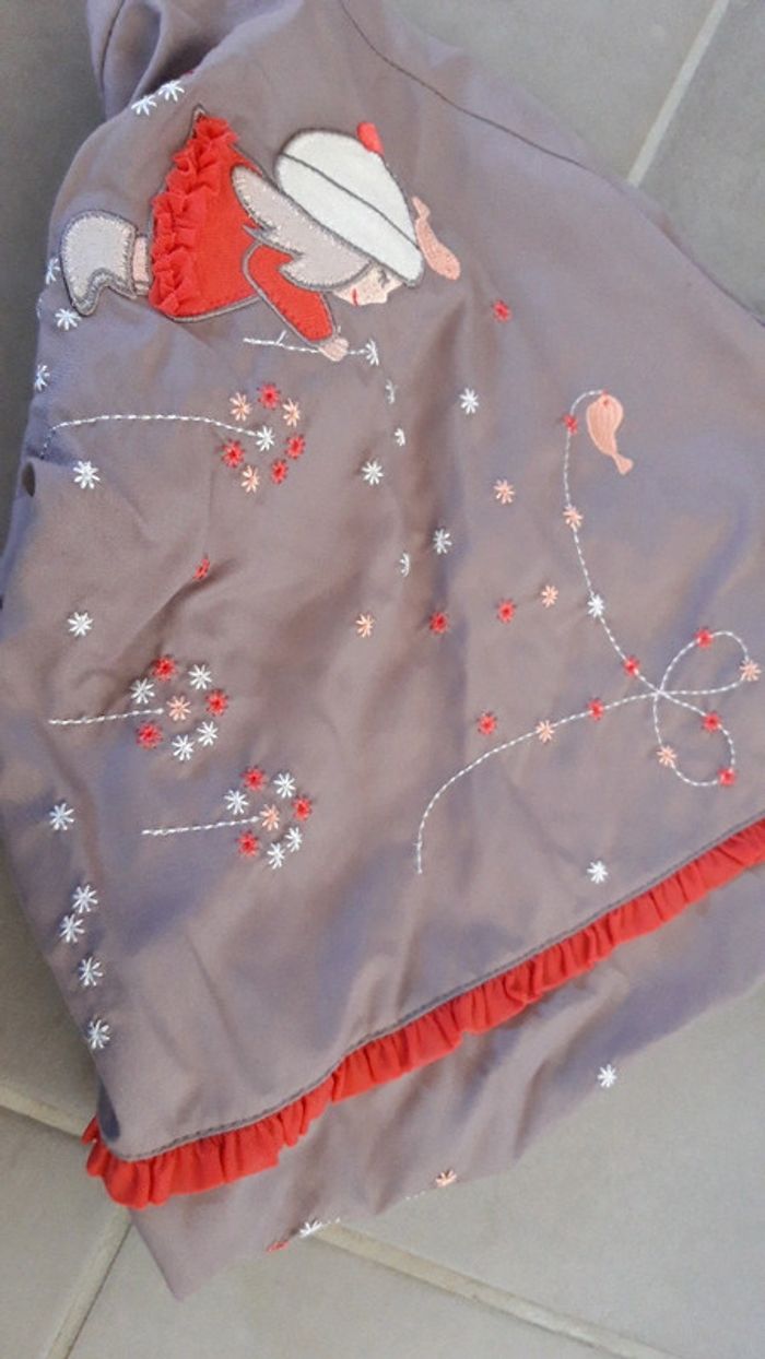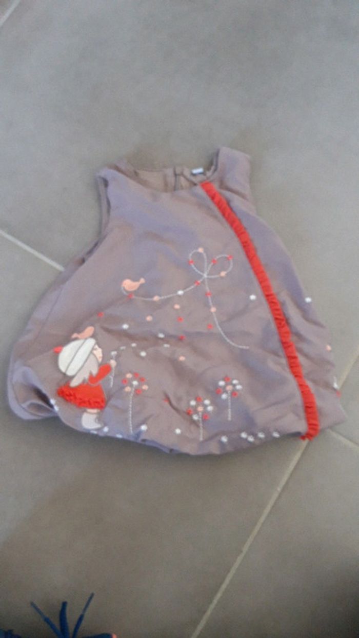 Bonjour, Je vends une robe en 6 mois couleur marron/gris avec de jolies broderies dessus. Elle est en très bon état.
