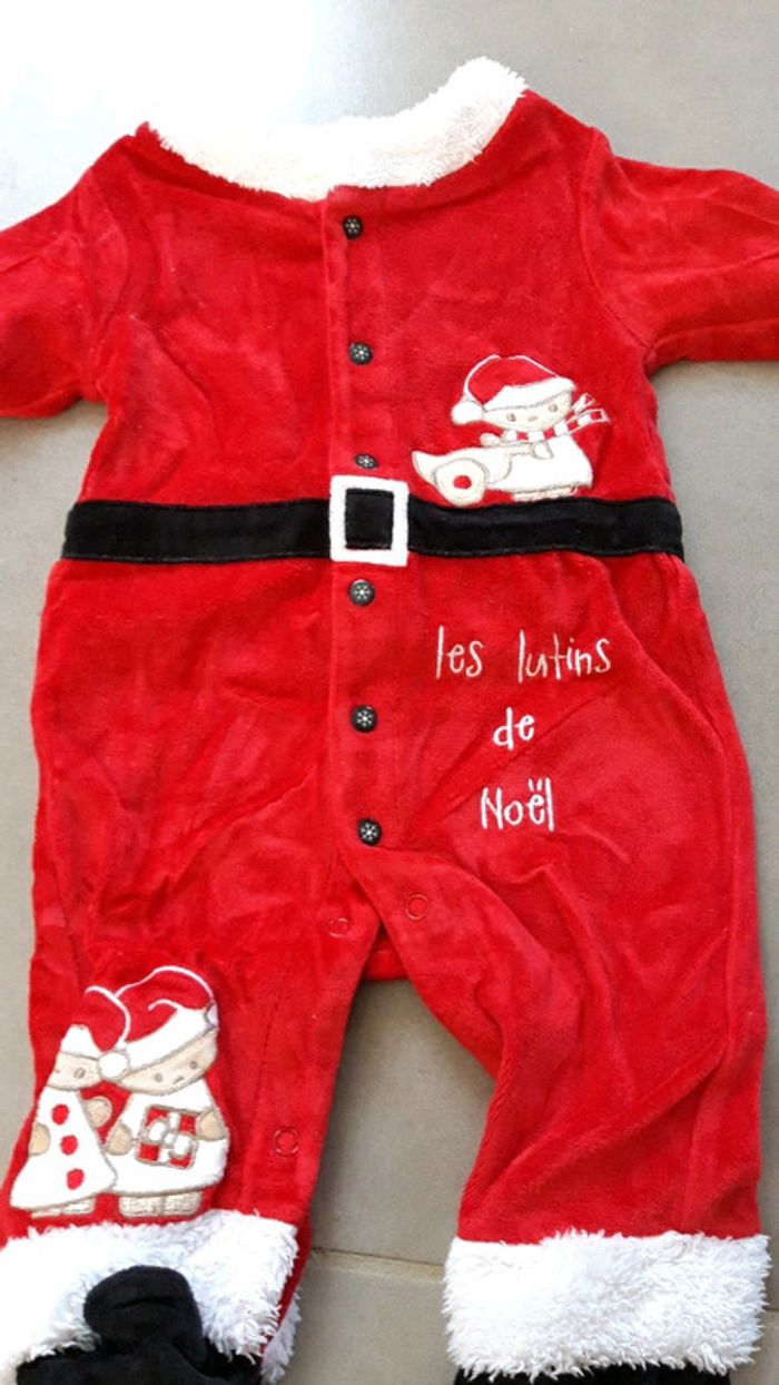 Bonjour, Je vends un pyjama/dors bien rouge (le rouge est plus foncé en vrai...). C'est un pyjama de Noël mixte à pression. En bon état, il est de taille 6 mois.