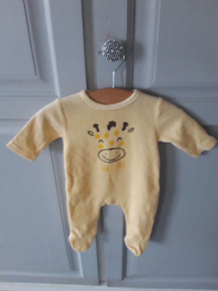Bonjour, Je vends un pyjama jaune donc mixte en 1 mois de la marque tex. En très bon état, car ma fille était trop grande pour le porter donc juste laver... Plusieurs articles bébé et enfant dans mon dressing donc n'hésitez pas à faire un tour et à me demander si vous avez besoin de renseignements 😀
