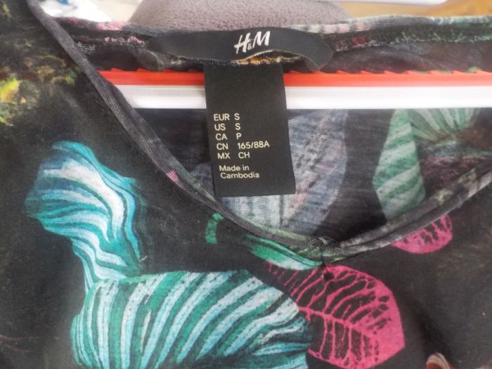 TUNIQUE / TSHIRT H&M Taille S fond noir fougères et ananas multicolore - photo numéro 1