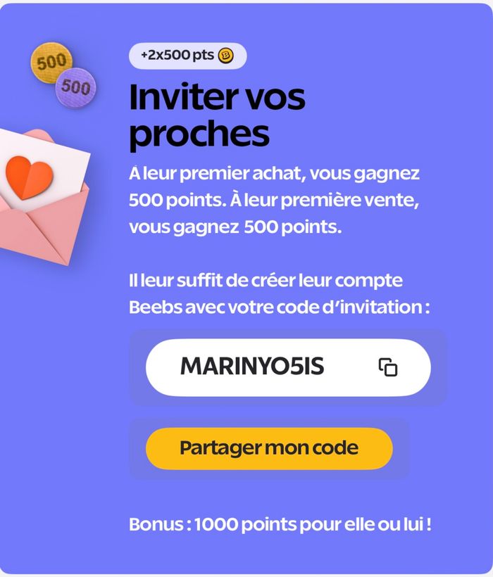 Profitez de 1000 points en vous inscrivant avec mon code de parrainage 😉