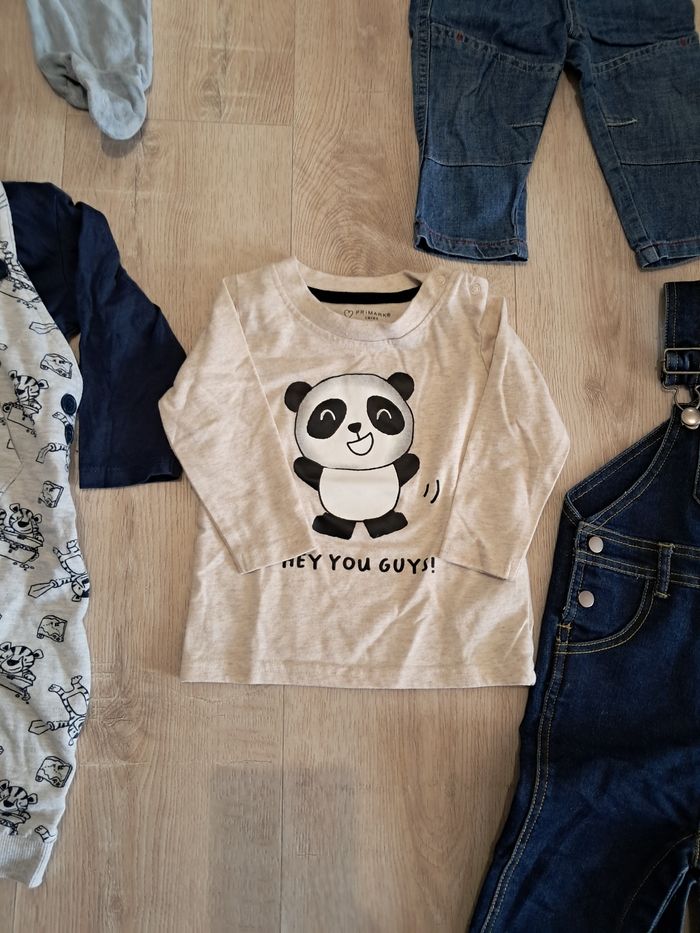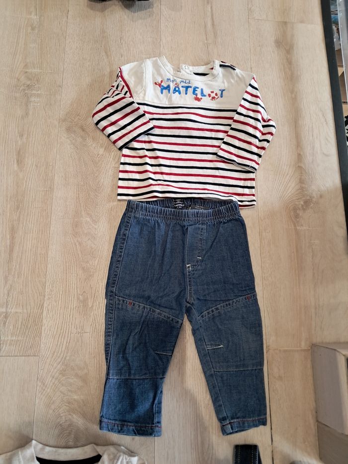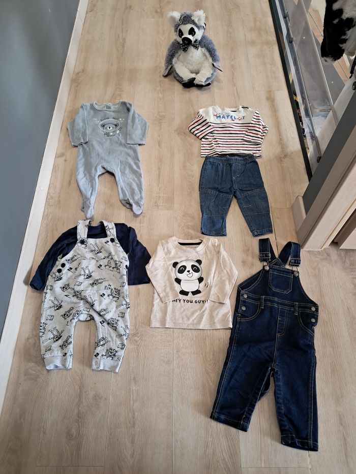 1 salopette + t shirt manche longue dopo dopo avec tigre pirate qui s'ouvre à l'entrejambe neuve 6/9 mois taille comme 9 mois neuve passée 1x à la machine bleu et gris 74cm 1 salopette en jean kiabi neuve passée 1x à la machine. S'ouvre à l'entrejambe egalement 1 t shirt manches longues panda 6-9mois 74cm taille comme un 9 mois neuf passé 1x à la machine 1 ensemble terre de marin porté 2x tbe 1 pyjama koala pat&ripeton porté 2x Maison non fumeur, premiere main, pas d'animaux Je vends un lot 12 mois eté D'autres vetements sur #laul57babyboy9mois #laul57babyboy12mois