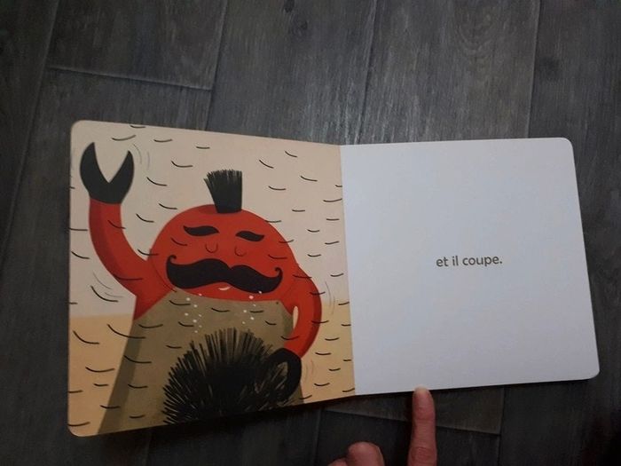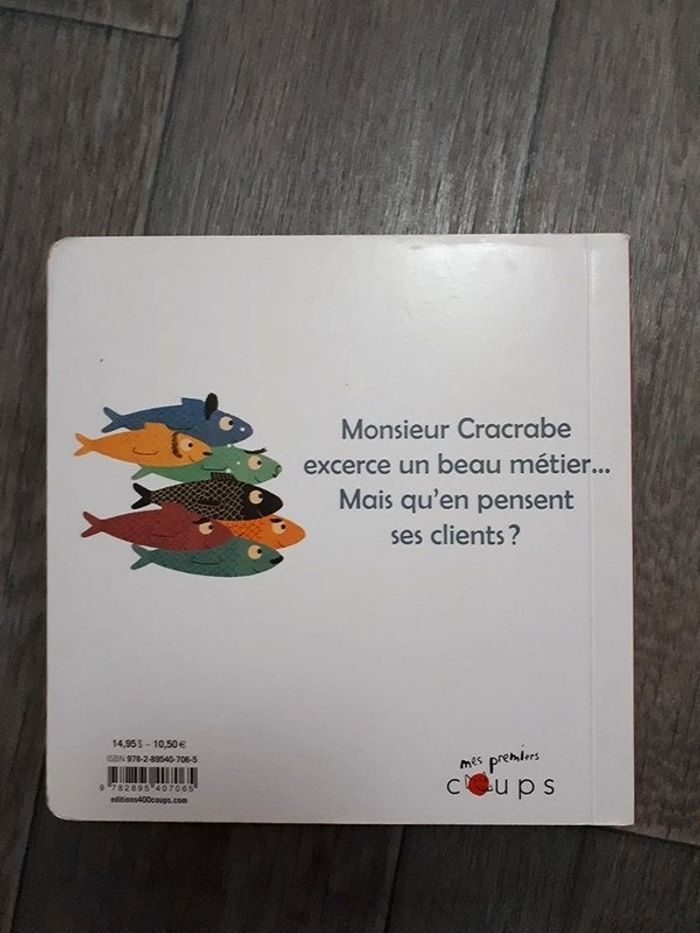 Vends livre Le beau métier de monsieur Cracrabe Christophe Pernaudet Sébastien Chebret 18 pages cartonnées 17,5 x 17,5 cm Monsieur Cracrabe a une passion peu commune pour un crustacé : c’est un virtuose de la coiffure. Entièrement dévoué à son art, il coupe, il taille et il recoupe, pour un résultat qui laisse son client sans voix ! Une histoire courte aux illustrations hilarantes et dont la chute ne manquera pas de faire rire aux éclats. très bon état ( marque de plis sur la couverture avant) Les 400 coups