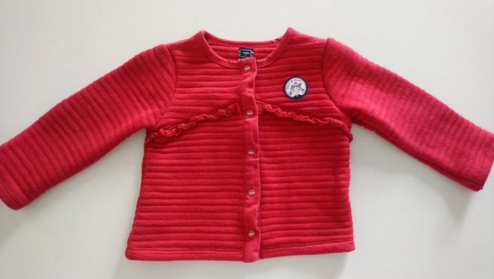 Veste terre de marins rouge, cœurs au niveau des coudes, 12 mois.