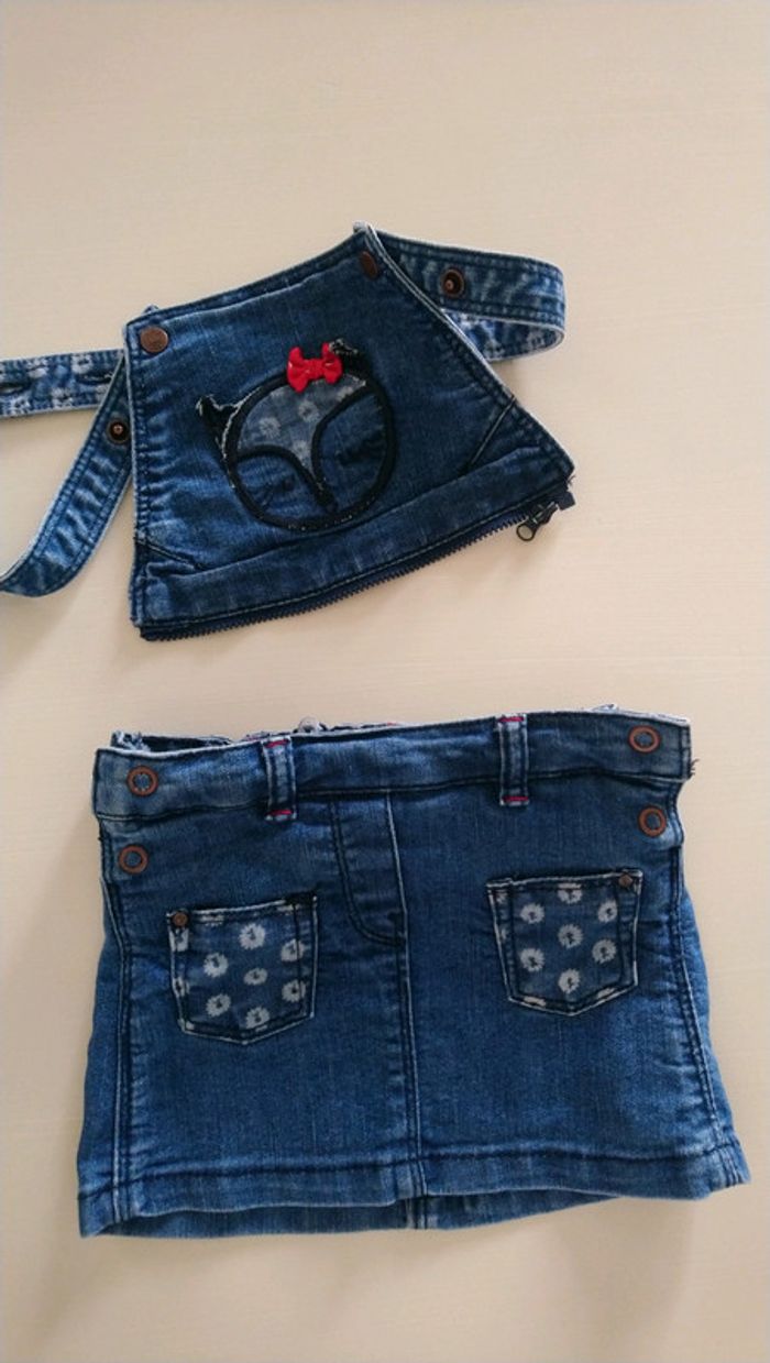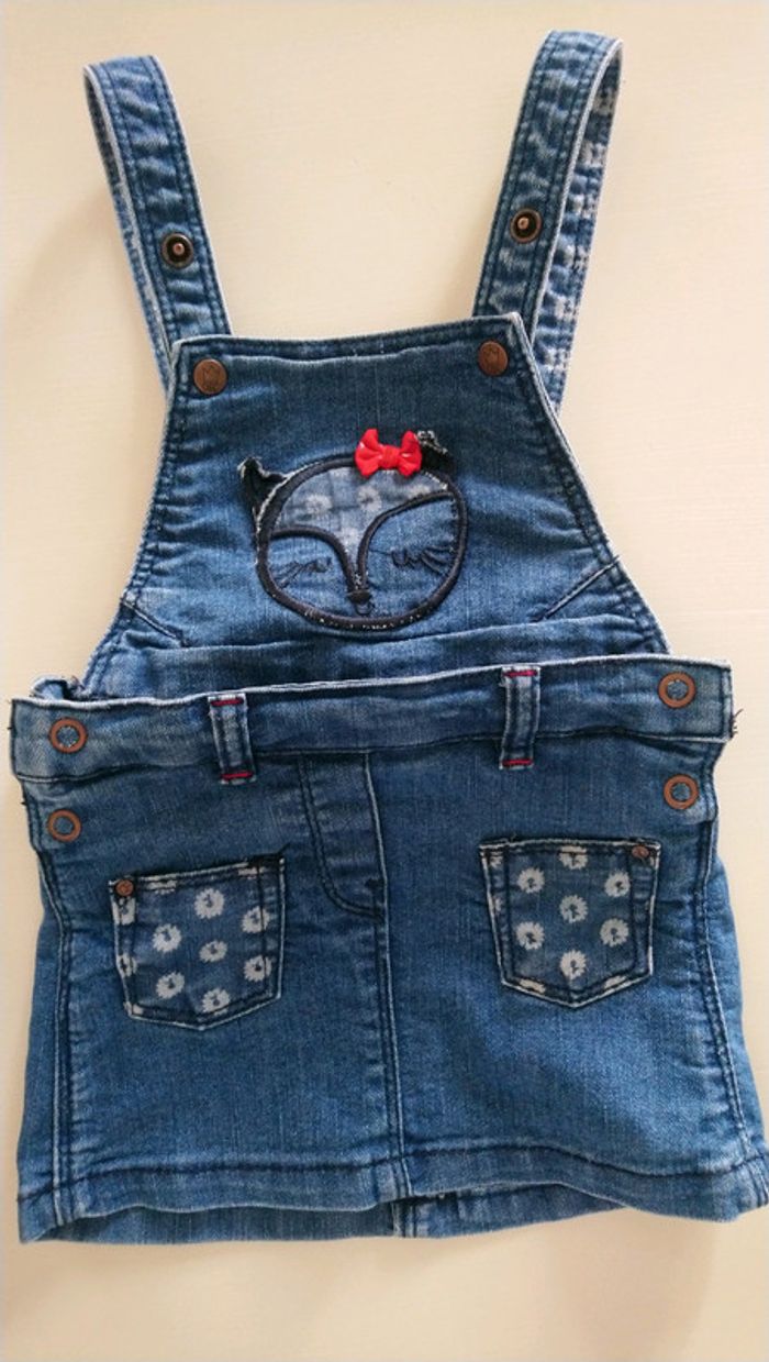 Robe en jean 2 en 1: robe salopette avec bretelles réglables ou jupe avec bloomer, 12 mois.