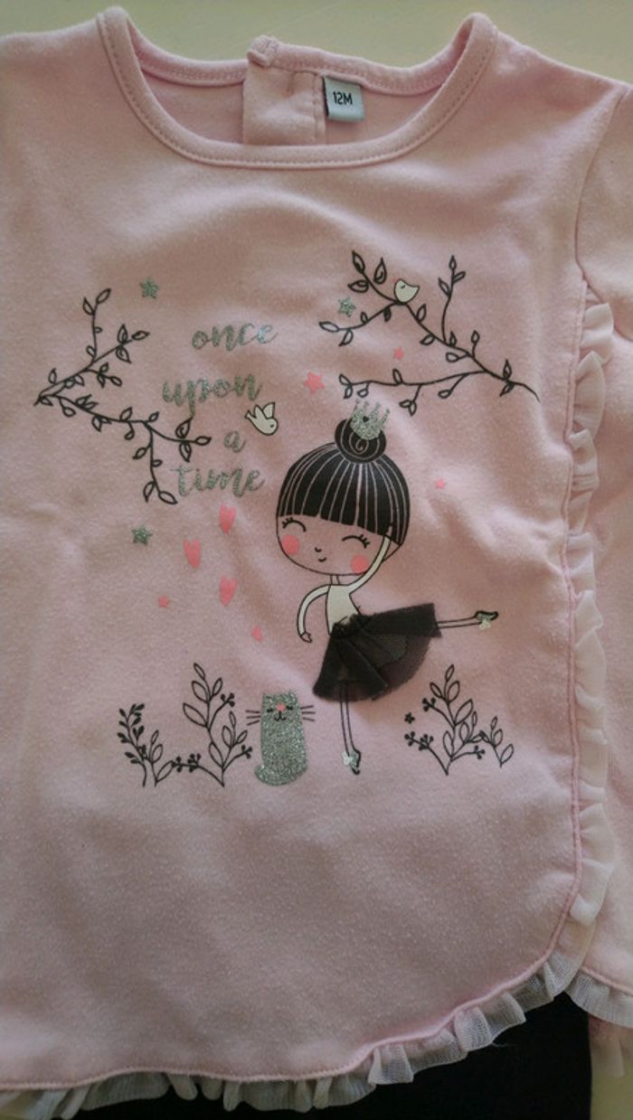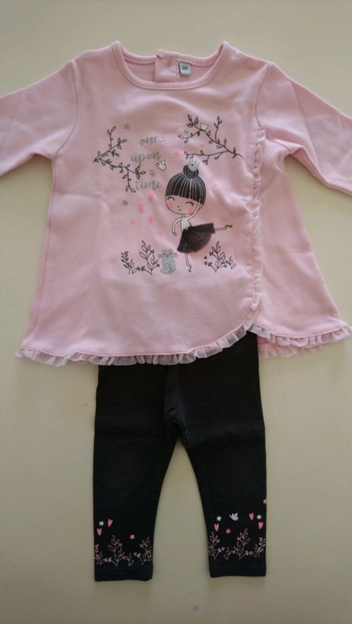 Ensemble: T-shirt tunique manches longues rose et legging ardoise, 12 mois.