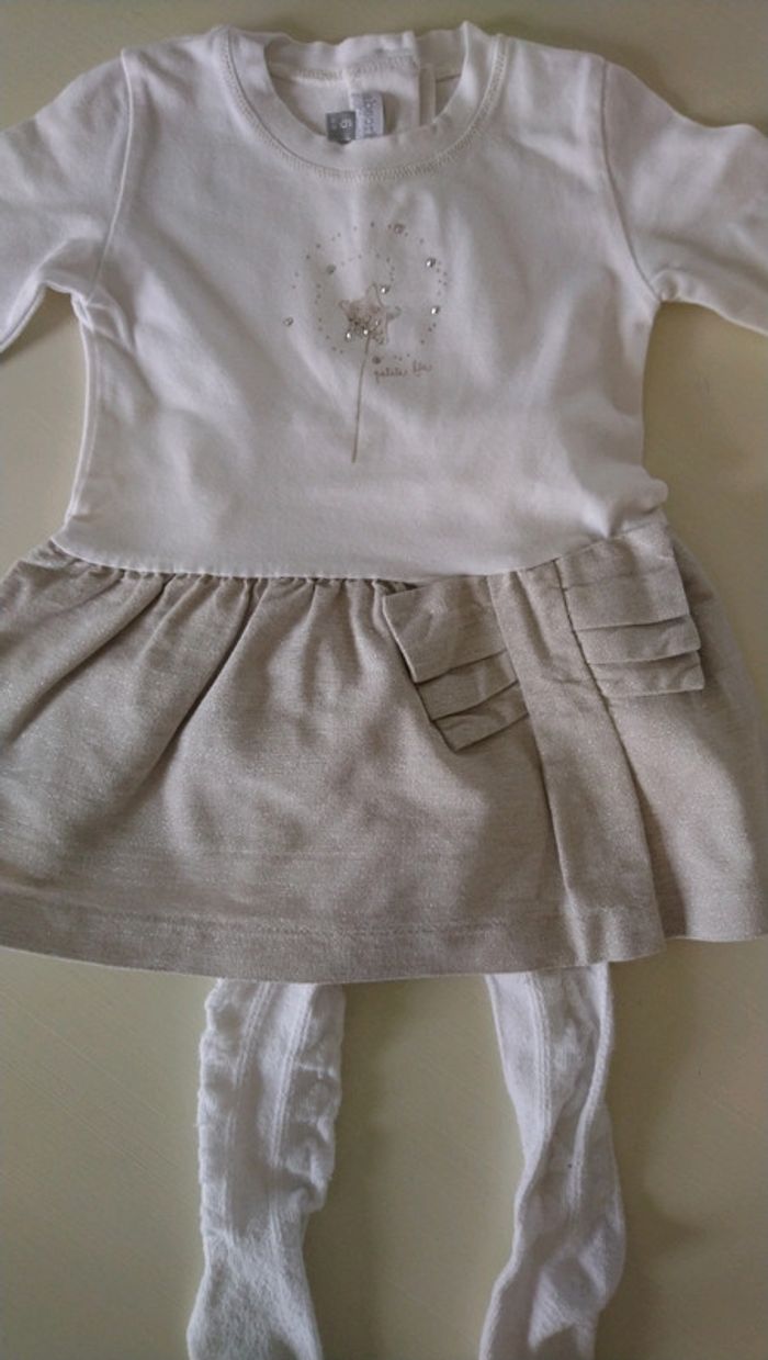 Ensemble absorba: robe ✨ manches longues motif baguette magique et cristaux de swarovski, collant à cœurs, 6 mois.